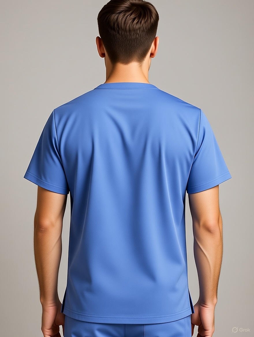This men’s scrub top in classic Ceil Blue is designed to deliver comfort, flexibility, and a neat professional finish throughout long working hours. The smooth back panel with a clean, minimal design ensures unrestricted movement and a polished appearance from every angle.