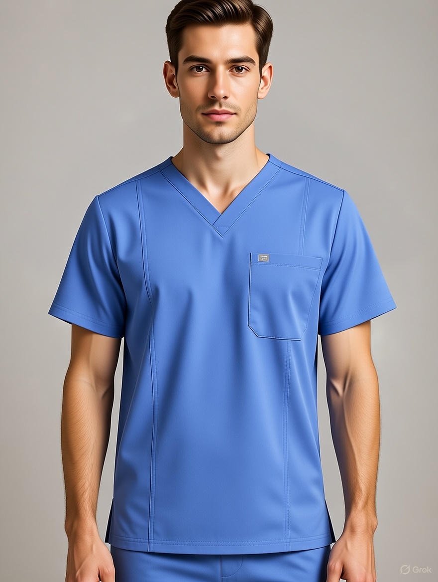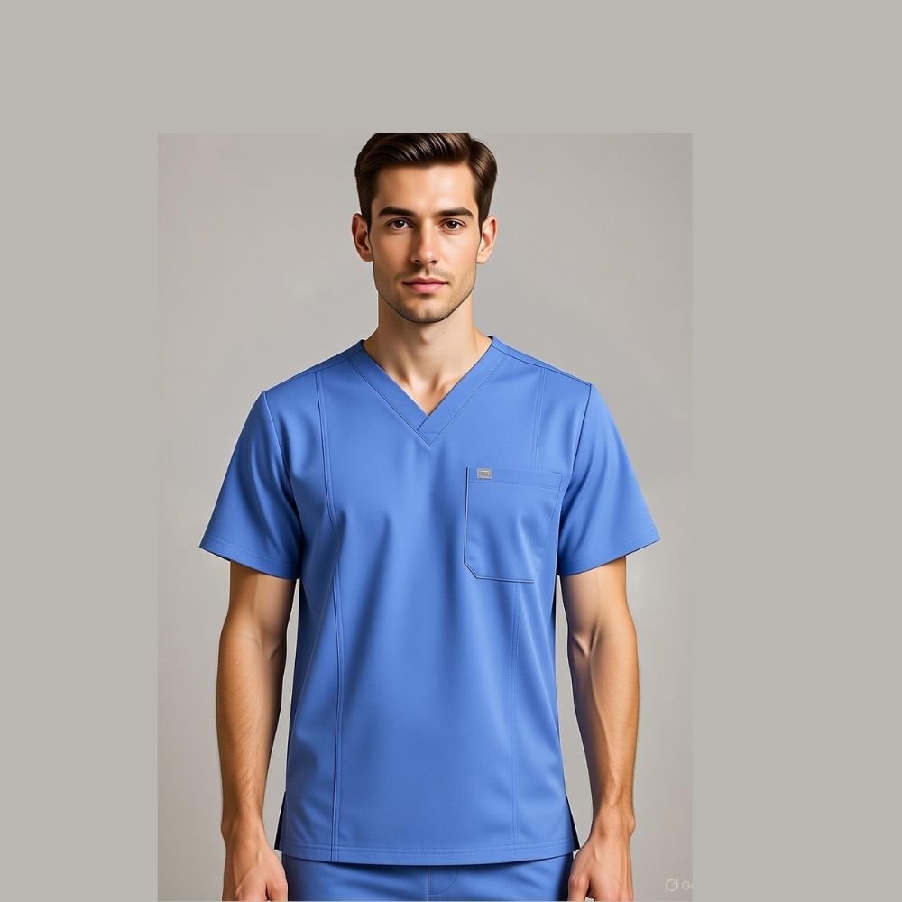 V Neck Ceil Blue Men Scrub Top
