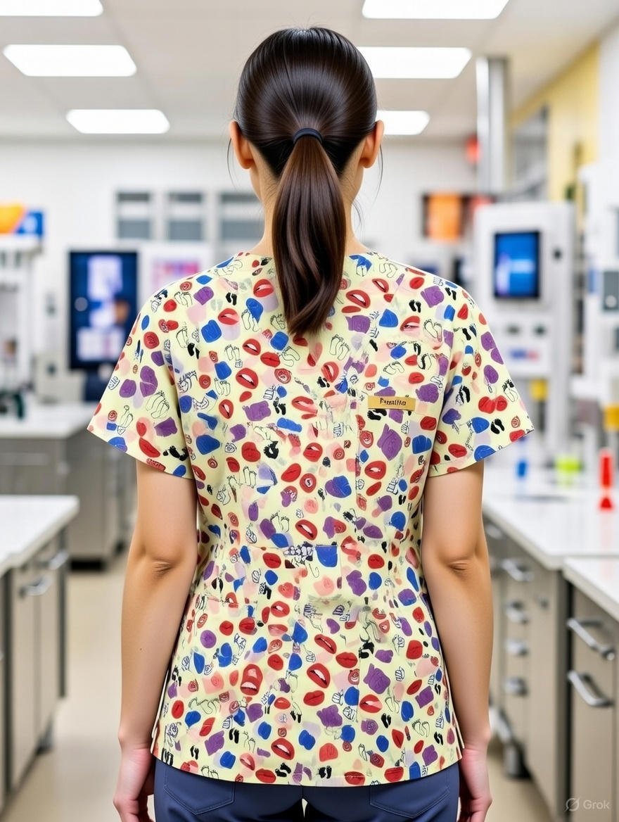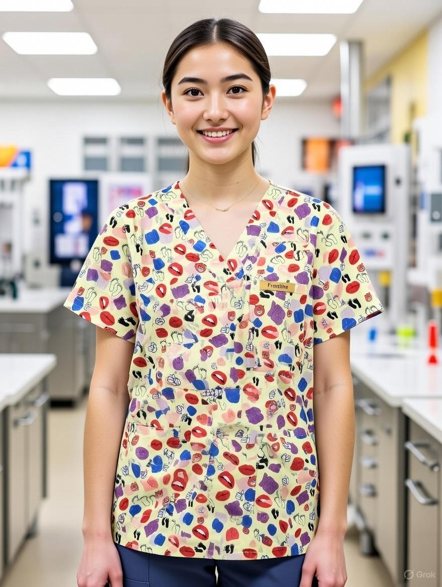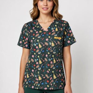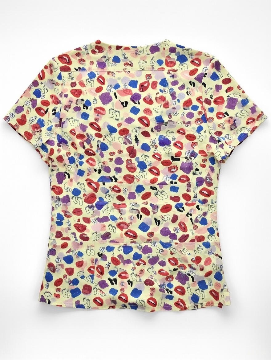 Light Yellow Medical Fun Print Scrub Top