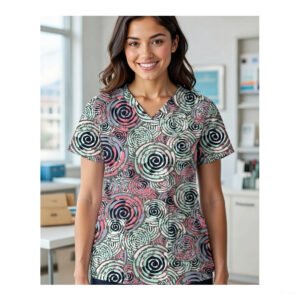 his elegant floral scrub top features a delicate blossom design for a soft and feminine look. Made from breathable, durable material, it provides lasting comfort and easy movement. With a classic V-neck and roomy front pockets, it’s a perfect blend of style and function for healthcare professionals.