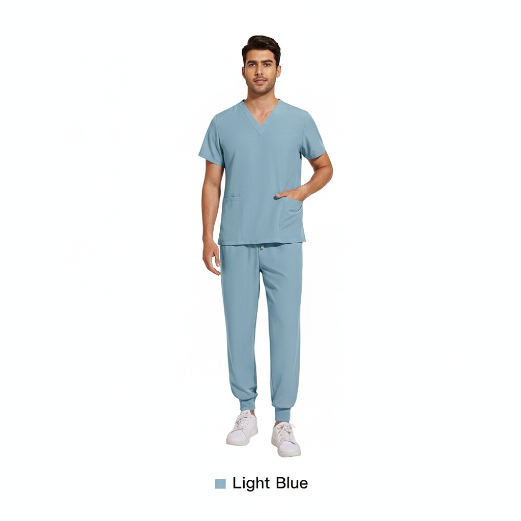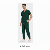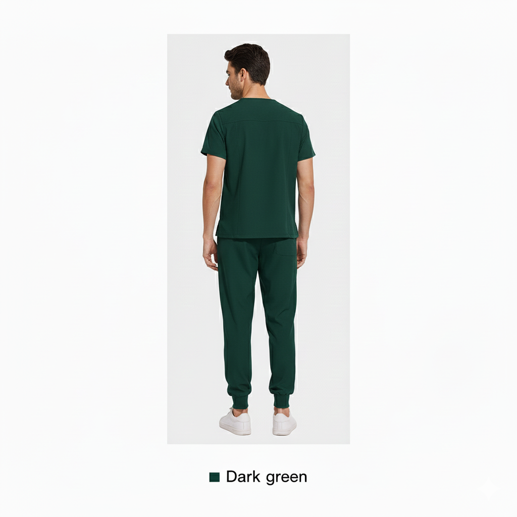 This dark green medical scrub set delivers a smart, professional look with superior comfort. Crafted from soft, breathable, and durable fabric, it is designed to support ease of movement during long shifts. The V-neck scrub top paired with modern jogger-fit pants makes it ideal for doctors, nurses, and healthcare professionals seeking both functionality and style.