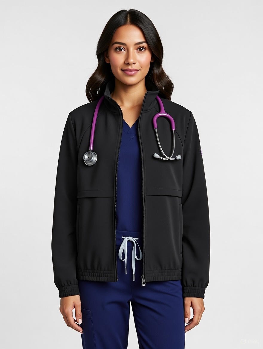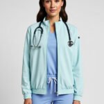 Scrub Jacket Pale Aqua Blue & Black