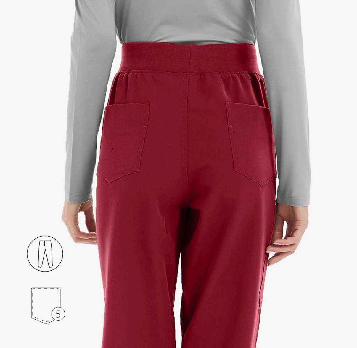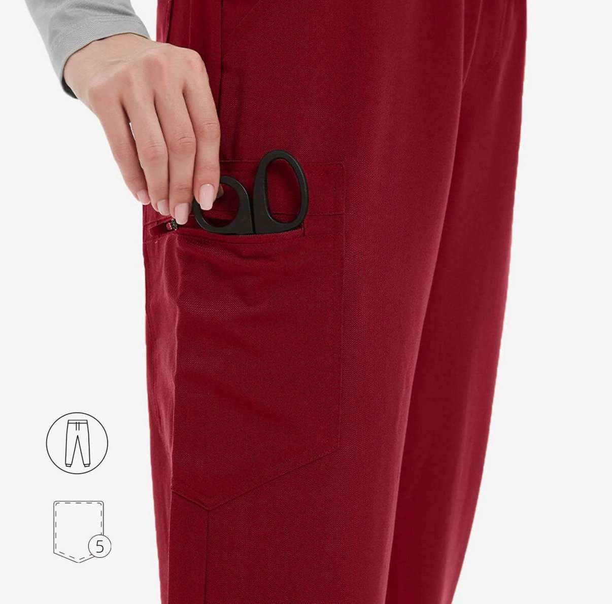 These women’s burgundy scrub pants are designed for a stylish yet professional look with all-day comfort. Made from soft, breathable, and durable fabric, they offer flexibility and ease of movement during long shifts. The elastic waistband with adjustable drawstring ensures a secure, comfortable fit, while functional pockets provide convenient storage. The rich burgundy color adds a modern, elegant touch, making these scrub pants ideal for healthcare professionals who want both performance and style.