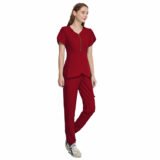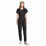 medical scrub set offers a sleek, professional look with all-day comfort. Designed with a clean, modern fit, the scrub top provides ease of movement, while the matching pants feature a straight-leg cut and practical pockets for work essentials. Made from soft, breathable, and durable fabric, this scrub set is perfect for long shifts in hospitals, clinics, and healthcare environments. The dark grey color gives a smart, polished appearance while being easy to maintain.