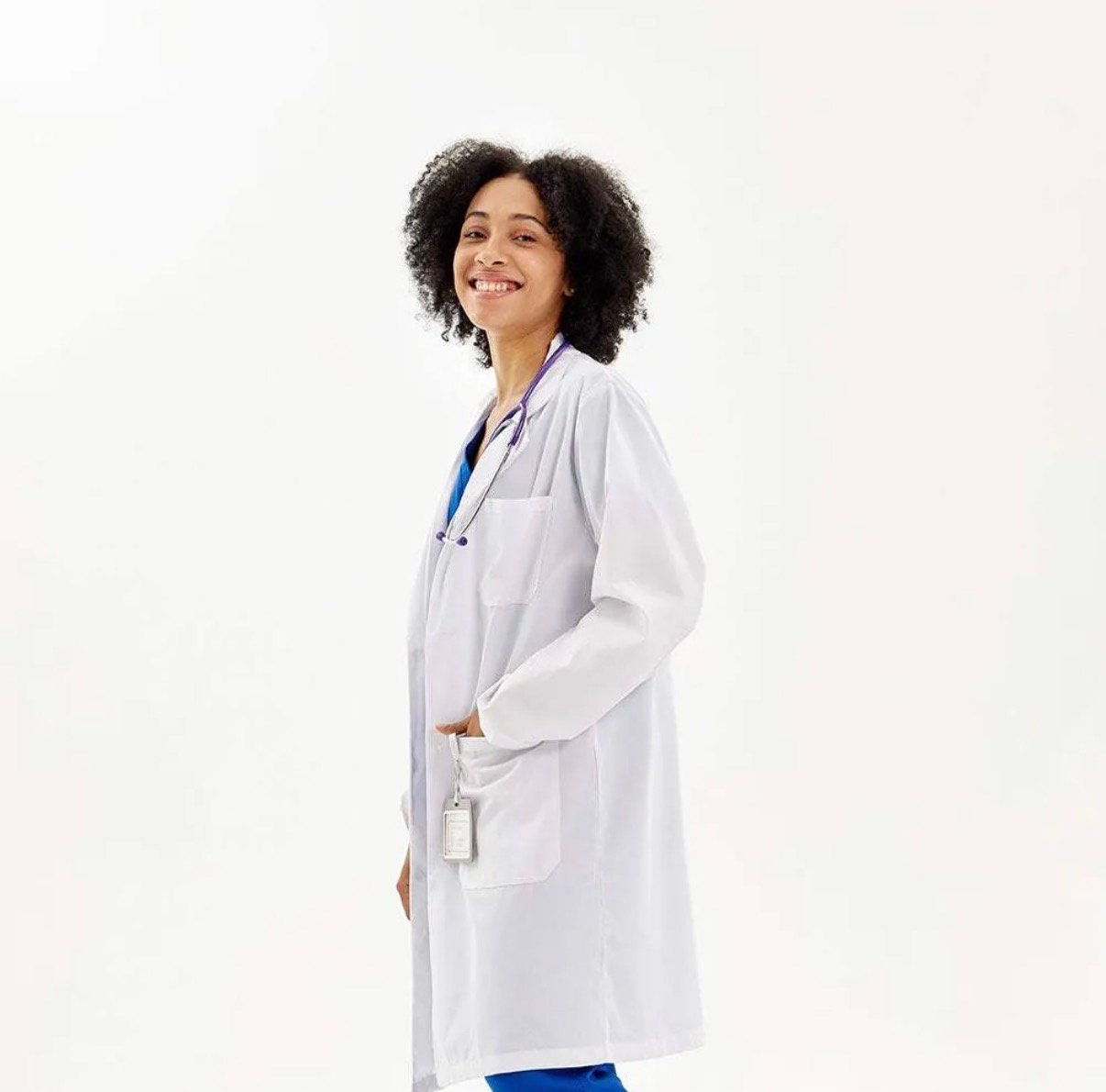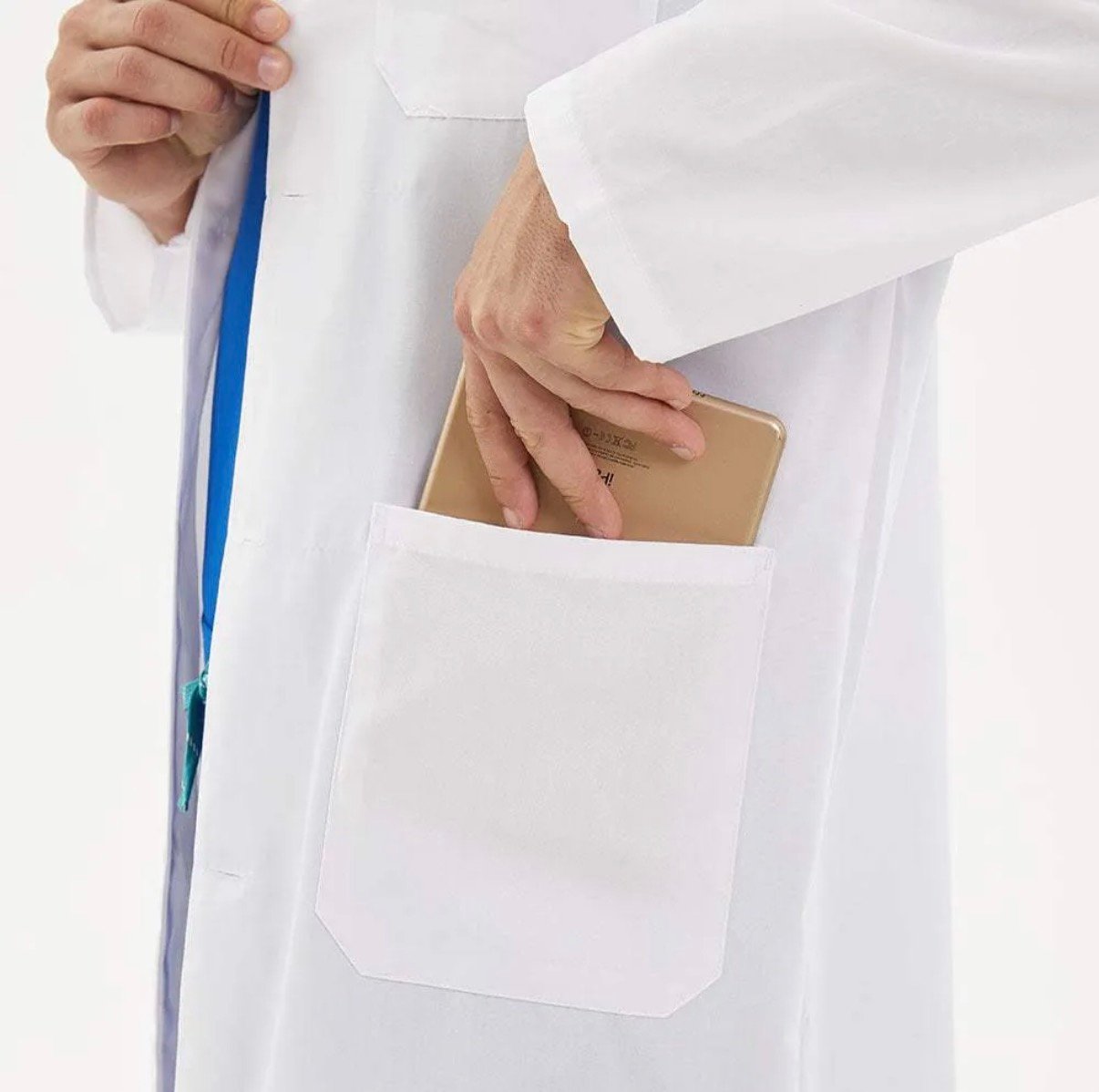 The crisp white color offers a clean and professional appearance, while the tailored fit allows easy movement during daily tasks. Featuring a smooth front closure and practical pockets, this scrub jacket is perfect for layering over scrubs in hospitals, clinics, and labs.
