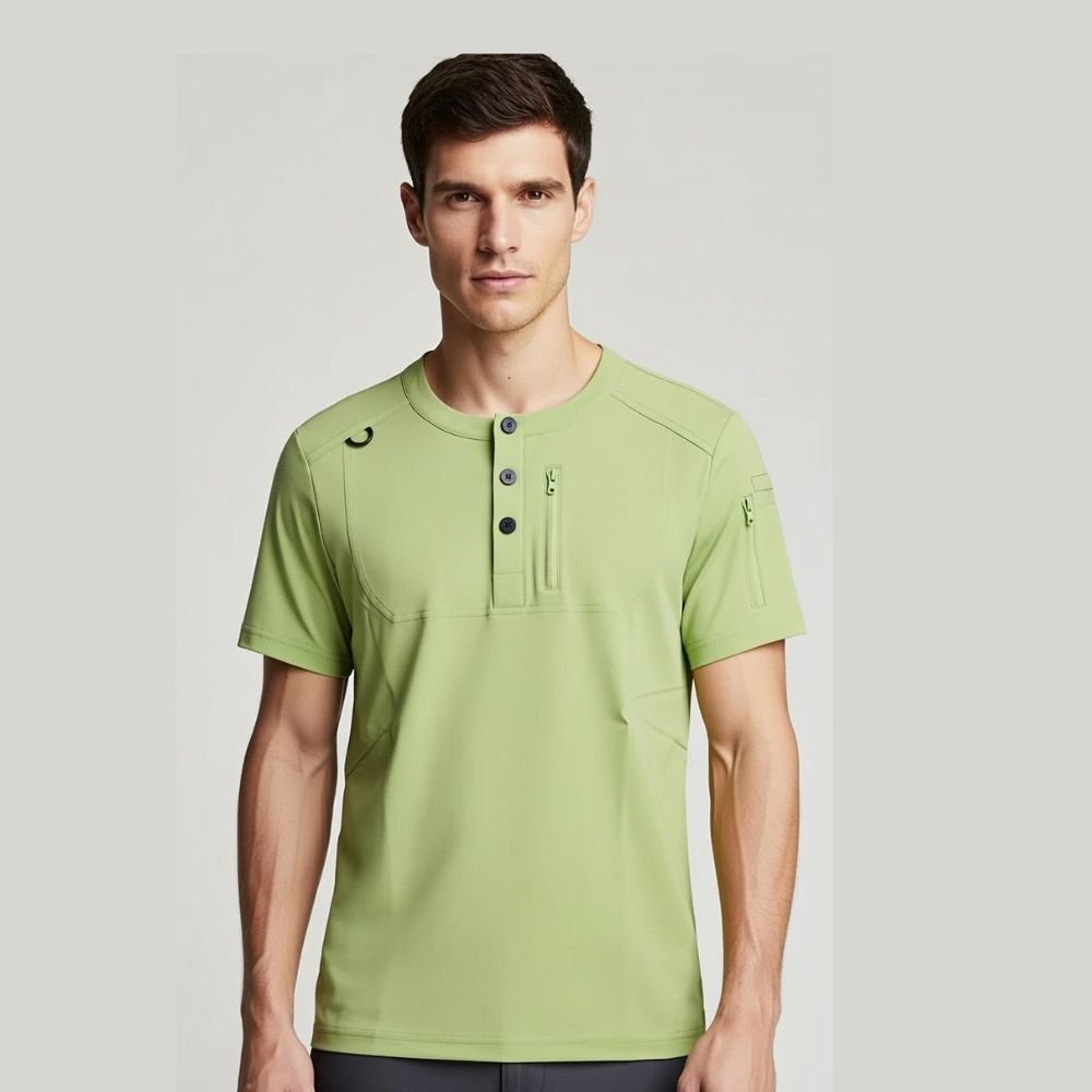 The Pistachio Green Zenith Heritage top combines a fresh, modern color palette with superior tactical functionality. This vibrant yet soothing green is perfect for healthcare professionals in dental, pediatric, or veterinary fields. Featuring a signature Henley-style neckline and advanced storage options, it is built for maximum efficiency and all-day comfort.